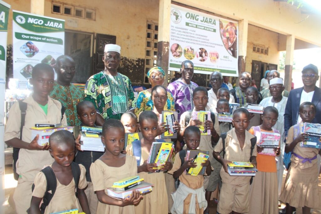 « L’année dernière, JARA a eu l’honneur d’accompagner 250 élèves de l’école de Kibédipou. Aujourd’hui, nous franchissons une nouvelle étape avec 650 élèves de l’école centrale. Ce n’est pas un simple don ; c’est un investissement dans votre avenir, dans votre réussite et dans le développement de notre pays. »